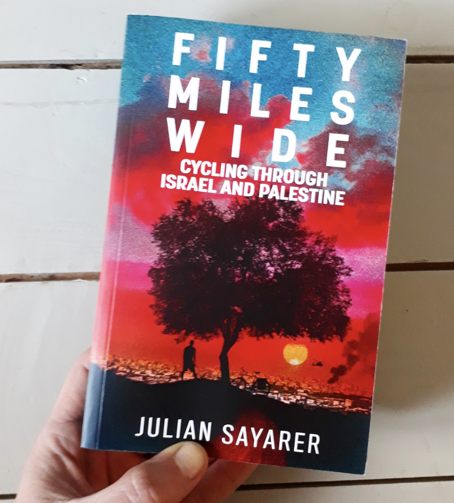 Those sounds are from Nablus, Palestine. I was there before the lockdown, researching articles for Forbes.com and The Guardian. The Forbes article majored on a new e-bike tour of Bethlehem that zips past Banky’s Walled-Off Hotel, and the Guardian article explored Palestine’s burgeoning bicycle scene. For that piece I interviewed Sohaib Samara and Malak Hasan, co-organisers of advocacy group Cycling Palestine. We met in Bethlehem and the first part of today’s show is the audio from that interview, with Malak translating Sohaib’s Arabic as we went along. The second half of the show is also Palestine-themed — I talked with travel writer and cycle tourist Julian Sayarer. He has a brilliant new book out today. “Fifty Miles Wide” is his often harrowing account of a number of recent cycling trips in Israel and Palestine, meeting with people on both sides of the divide. It’s an unavoidably political book — heck, even Palestinian recipe books drip with political commentary; food is from the land, and this land is bitterly contested as it has been for thousands of years. So, this isn’t an episode for the faint-hearted — there are some graphic moments, in both halves of the show. Before that long discussion with Julian, which we did over the internet, here’s Malak and Sohaib who I recorded in the foyer of Bethlehem’s Manger Square Hotel.