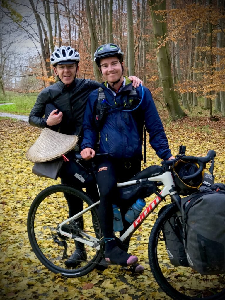 That rather unorthodox opener was by a Chinese cycle tourist who spotted my son Josh in the Shinyiang province of China and decided to serenade him by the roadside with his little guitar to entertain his three fellow cycle tourists, all of whom were recording the episode on their phones. I’m Carlton Reid and in this episode of the Spokesmen Cycling Podcast supported by Jenson USA I interview my intrepid cycle-touring son who is now back in the UK after his four-month journey from China. Josh picked up a carbon gravel bike at the Giant factory in Shanghai, China, so I thought it would make a good story arc for josh to almost finish his trip by visiting the Giant factory in the Netherlands. I rode across to Lelystad to meet him, and, after a factory tour, we cycled the 70 or so kilometres to Amsterdam where, the next day, I started the interview while we were riding on the famous cycleway that cuts through the National museum of the Netherlands..
